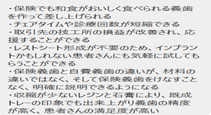 その部分には大いに賛同する。まさに今保険義歯の世界はチャンスに満ち溢れている。