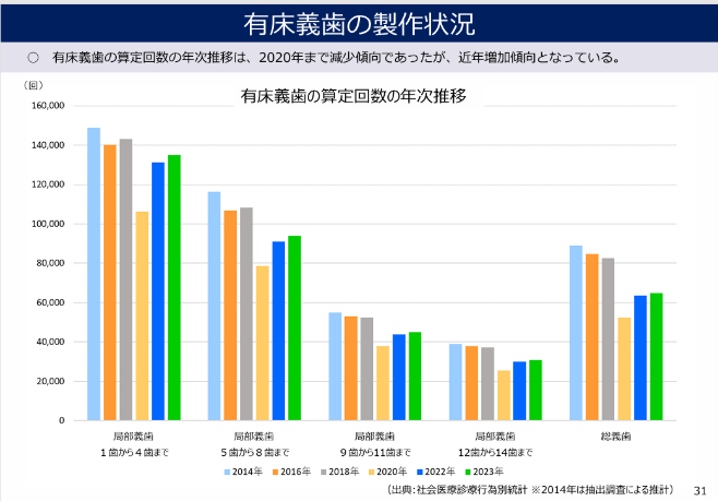しかも資料によると2020年を境に有床義歯の算定回数は増加に転じている。