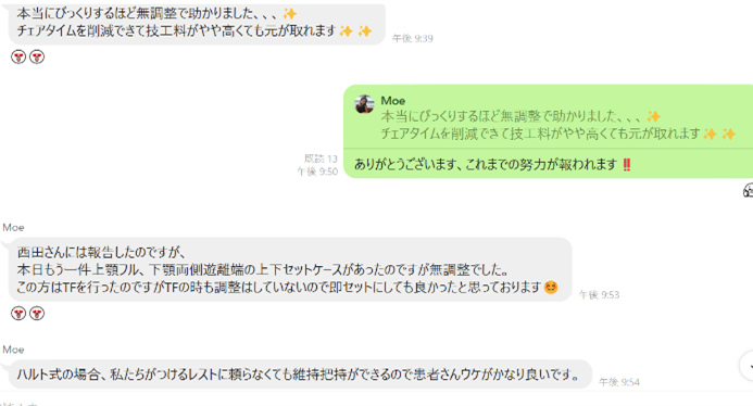 太田氏によれば「ハルト式義歯製作法」に置換したところ削減されたチェアータイムを他の診療に使えるのでその効果は計り知れないとのコメントをされている。