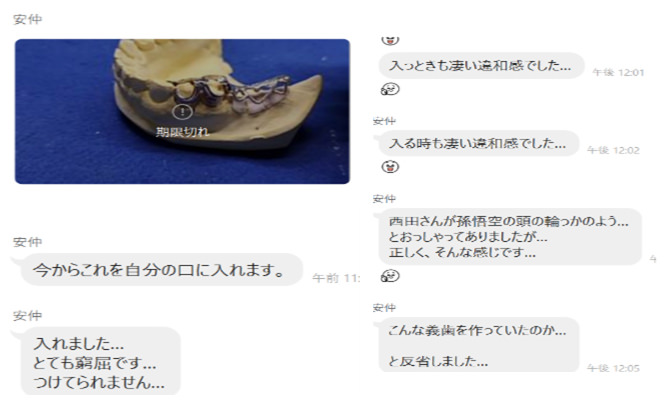 しかし、残念ながら30年近いキャリアの中で自身が製作したものを自身の口腔内に一度も試適したことが無かった。